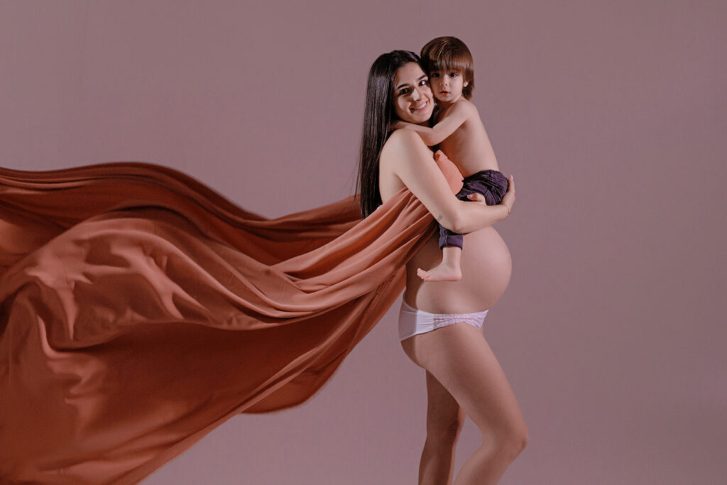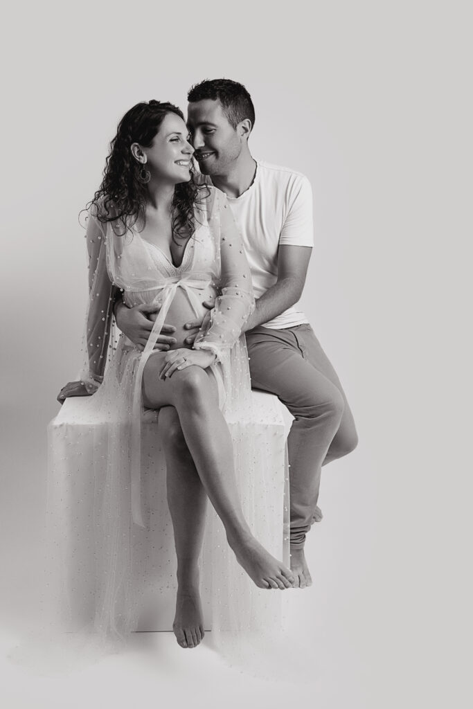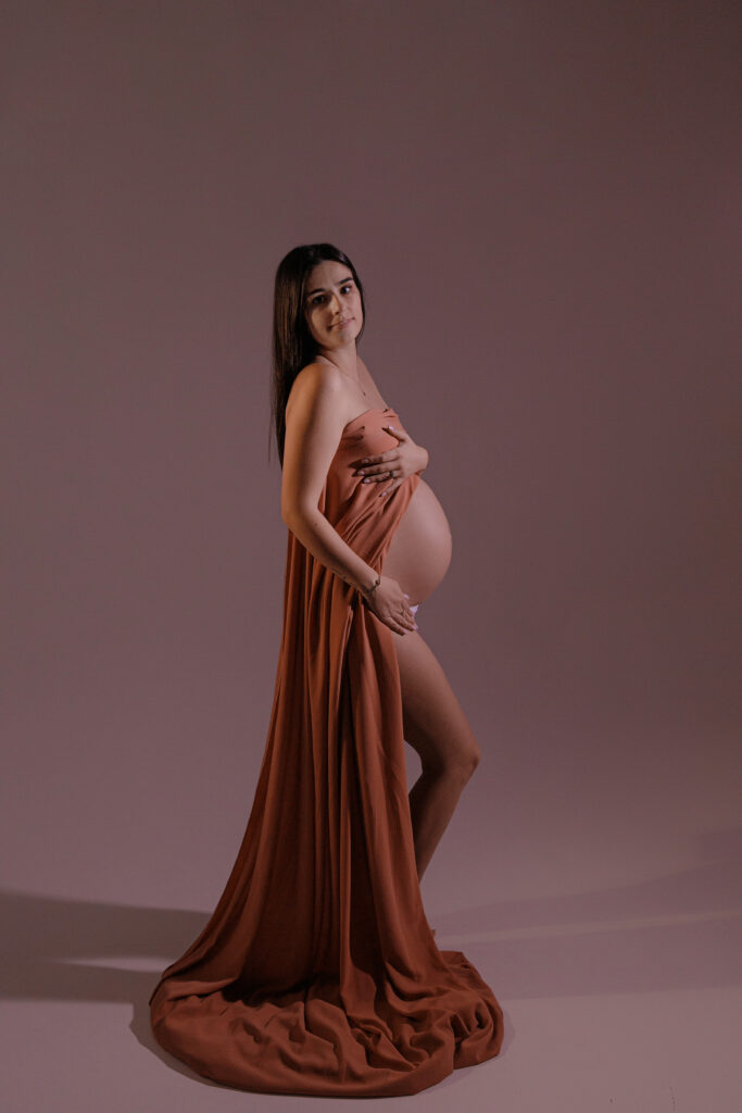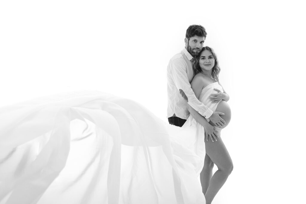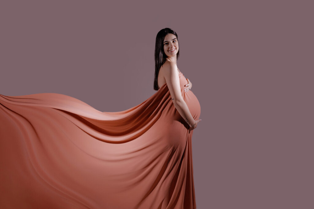 Le studio met à votre disposition une belle collection de robes de grossesse, tissus, voiles et accessoires spécialement pensés pour sublimer votre séance photo.