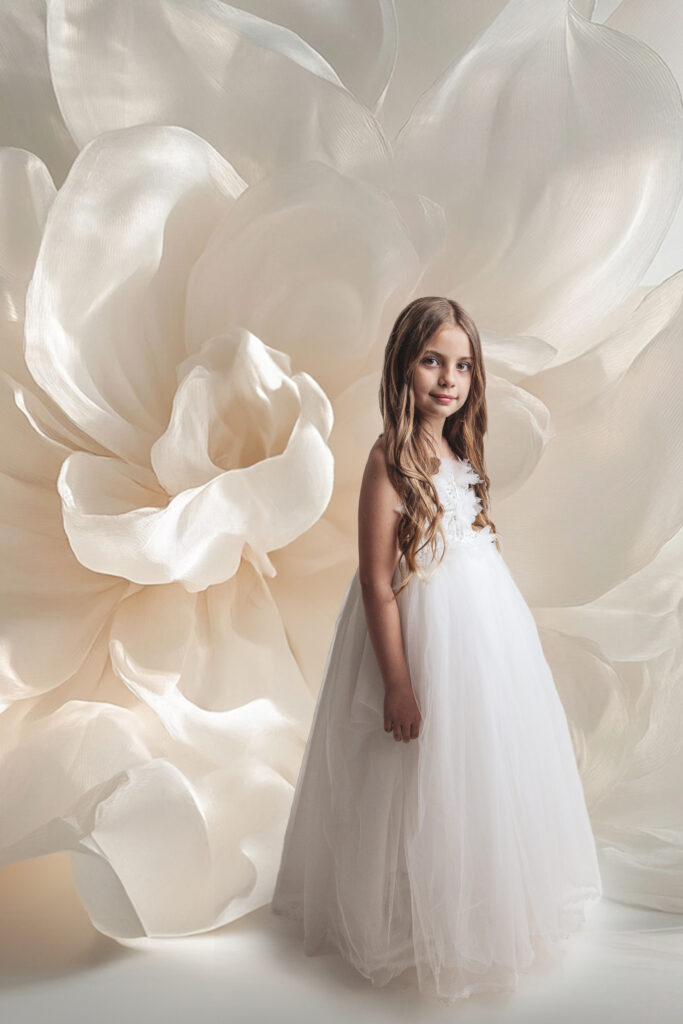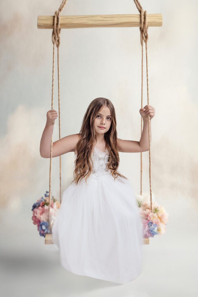 Robe somptueuse, accessoires raffinés et décors enchanteurs… tout est réuni pour faire rêver votre enfant. Le temps d’une séance, elle devient la princesse de son propre conte.